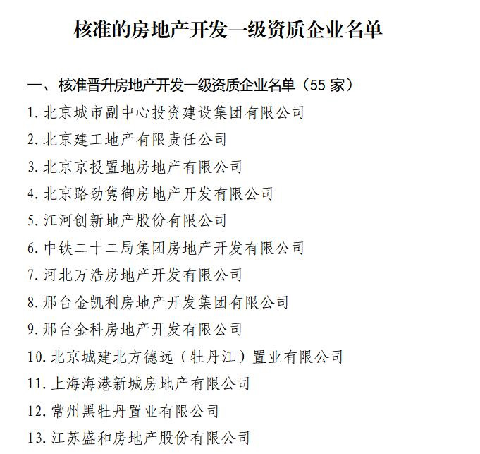 房地產(chǎn)開發(fā)資質(zhì)分為兩個級別,國家一級資質(zhì)是最高級別,對企業(yè)的整體規(guī)模、開發(fā)業(yè)績、施工質(zhì)量、人員配備、從業(yè)年限等均有要求,獲批難度較大。本次全省僅3家企業(yè)核準(zhǔn)晉升房地產(chǎn)開發(fā)一級資質(zhì)。